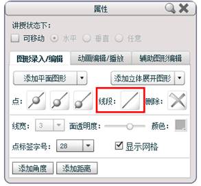 线段:在已添加的图形上通过拖拽进行绘制,先点击在所要添加端点的位置出现蓝点时就可以拖拽绘制了;