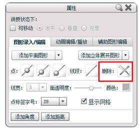 删除:选中某一图形元素进行删除,先选择所要删除的对象,在点进行删除,若选择的对象不是独立的元素则会有相应的提示;