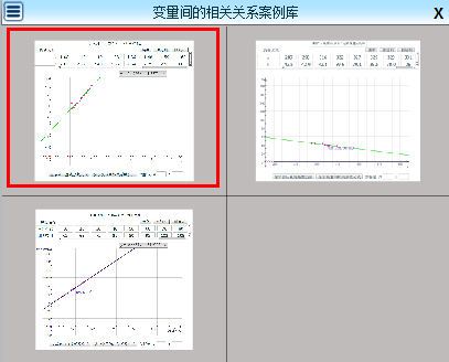 选择所要的变量间的相关关系的案例,单击就会在新的一页中插入这个案例。