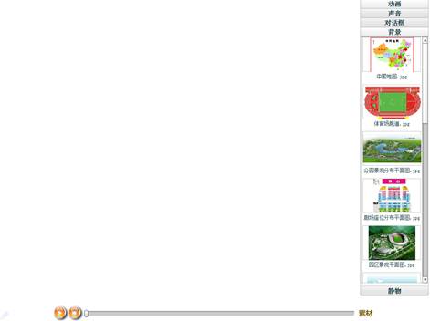动画制作工具提供了数学学习所需生活场景的人物库、建筑物库、日常用品库、音效库、背景库;可设定对象的运动轨迹和速度、显隐效果等,能够在运动过程的不同点上添加配音、音效、文字等学习相关信息,能够支持多个对象同步运动,并可进行二次编辑,方便教师制作简单的动画,能够很好地满足情境化教学的需求。操作步骤如下: