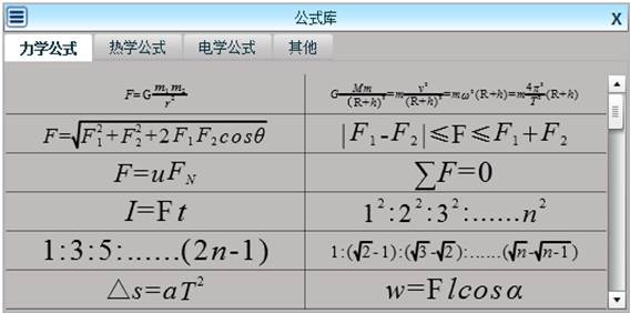 ,弹出物理装置菜单,可选择力学、热学、电磁学、近代物理、全部选项卡,单击装置图标,插入装置。