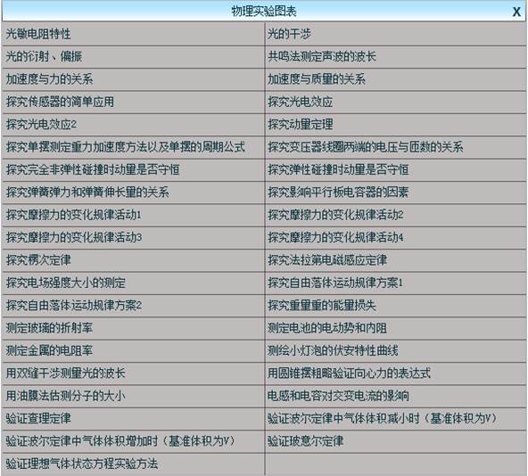 ,出现“物理实验图表”菜单,菜单中列出了常用模板,单击相应名称,即可插入图表。