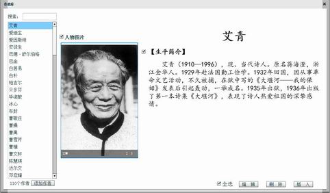 点击“作者库”按钮,弹出作者库面板,如下图: