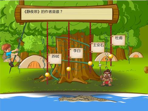 点击“游戏模板”按钮,弹出“游戏模板”缩略图列表,点击缩略图,对应动画模板出现在操作区内。该模板生成的动画可用于课堂讲授或者在课后练习的时候使用。