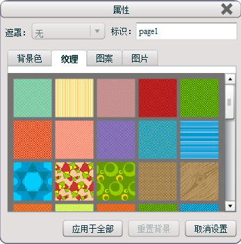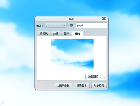 c. 单击『重置背景』按钮,将当前页背景恢复为本次编辑前的统一背景。(注:只有改变某一页面背景后,该页面属性中的『重置背景』按钮才可用。)