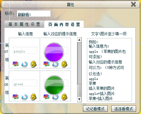 单击『翻翻看』按钮,进入翻翻看的设置页面。有基本属性设置和页面属性页面。
