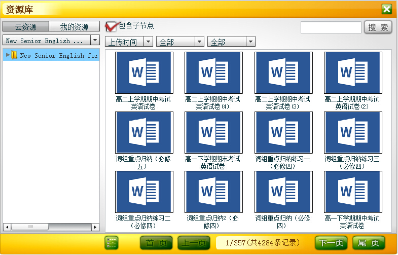 展开目录结构按照知识节点进行查看,也可通过勾选右侧“包含子节点”查看任一节点下的资源。