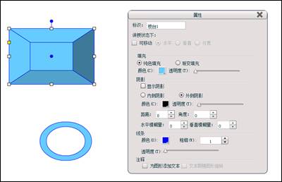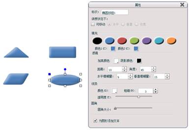 通过“属性”设置功能,还可以改变图形的填充颜色和透明度、阴影的位置和颜色以及距离、线条颜色和粗细、透明度、箭头样式及注释是否为图形添加文本、文本是否跟随图形旋转(注:只有勾选“为图形添加文本”后,同时选中图形,才能进行“文本跟随图形旋转”的设置)。