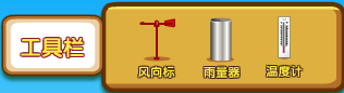 点击“工具栏”,在弹出的工具栏面板中提供风向标、雨量器和温度计,可以分别对风向、降水量和温度等天气指标进行测量。