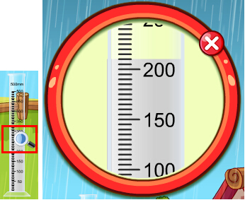 点击雨量器,雨量器即出现在画面中,如果在属性设置时选择了降雨\降雪的情况,雨量器将收集24小时的降水量,收集后将出现量筒,当鼠标放到量筒处时将变成放大镜,点击将放大量筒,方便读数和记录。