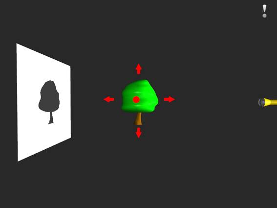 (2)点击红色箭头,改变手电筒照射方位,观察投影变化。
