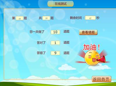 · 测试题数:设定此次测试的题数,下拉组合框中包括:“10题”、“20题”、“50题”、“100题”。缺省为100题。