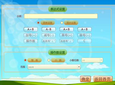 内容设定是设定本次测试的内容,包括表达式和操作数的设定。内容设定的结果将作为在线测试的依据。