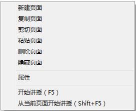 在软件界面左侧的缩略图预览区中单击鼠标右键,在右键菜单中选择“开始讲授”,文件进入全屏播放状态,用户可以通过右键菜单或键盘快捷键(Esc-结束播放,Enter-下一页)控制播放,此功能亦可通过点击键盘F5键实现;若要从当前页开始播放,在右键菜单中选择“从当前页面开始讲授”,或是点击界面右下方的“讲授”按钮即可实现,此功能亦可通过点击键盘Shift+F5或Ctrl+F5键实现。