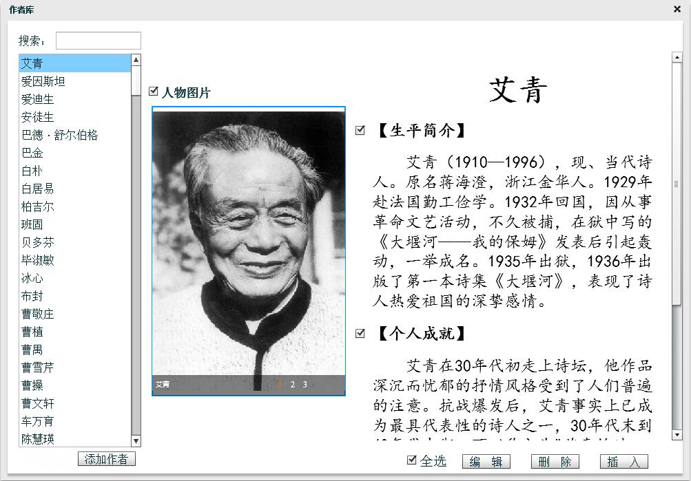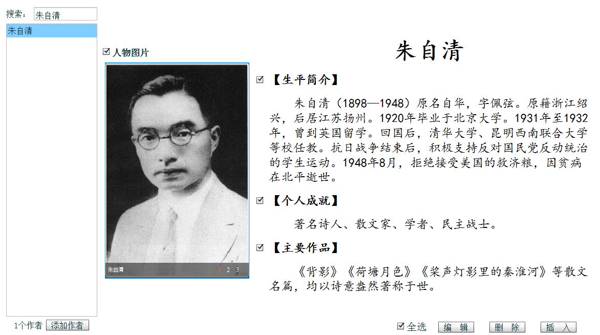 点击“作者库”按钮,弹出作者库面板,如下图: