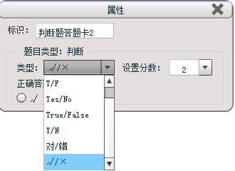 在属性选择面板中设置正确选项后,可以选择不同的选项类型,如是否,对错,对号或叉号等;