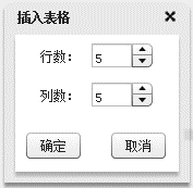 单击『表格』按钮,出现『插入表格』对话框,提示设定待插入表格的行数、列数(数值需在1至20范围内),设置好行数和列数后,单击『确定』,即在当前页面插入表格,单击表格中的空白处,可添加文字;单击『取消』,取消插入表格的操作。