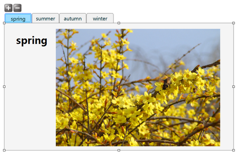 每一个分页标签对应一个内容面板,内容面板跟随分页标签的切换而切换。当拖拽任意对象(文本框、图片、视频、音频、动画等都可)且光标在内容面板范围内时,此对象自动作为此分页的内容。同理,对象也可以从面板内部拖拽移出。