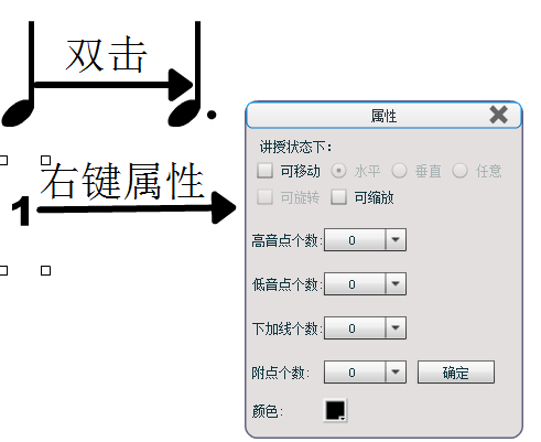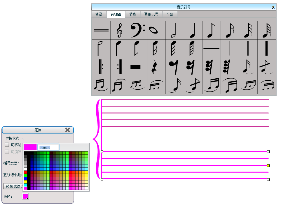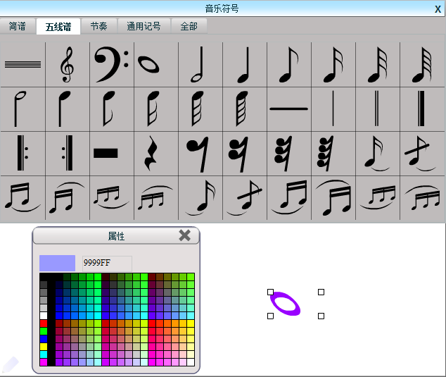 每个音乐符号在右键属性中,可任意选择颜色进行变色。