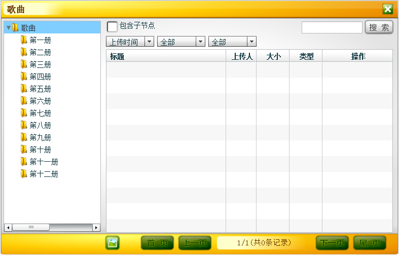 单击“歌曲”按钮,弹出资源面板, 左侧是知识体系结构,右侧是资源列表。