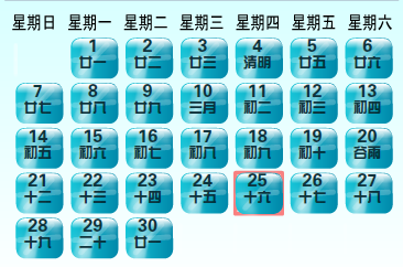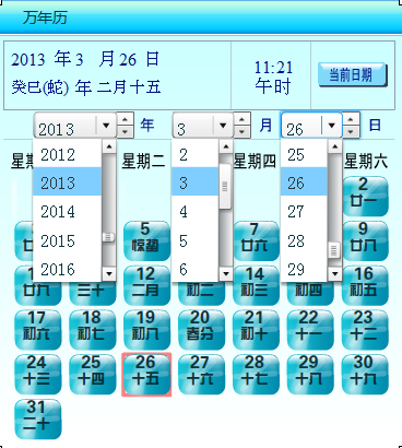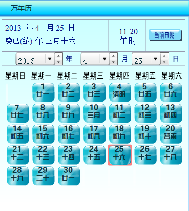 ※点击日历中的具体日期,红色方块标识当前选定的日期。也可以点击“当前时期”按钮,回到现在的时间。